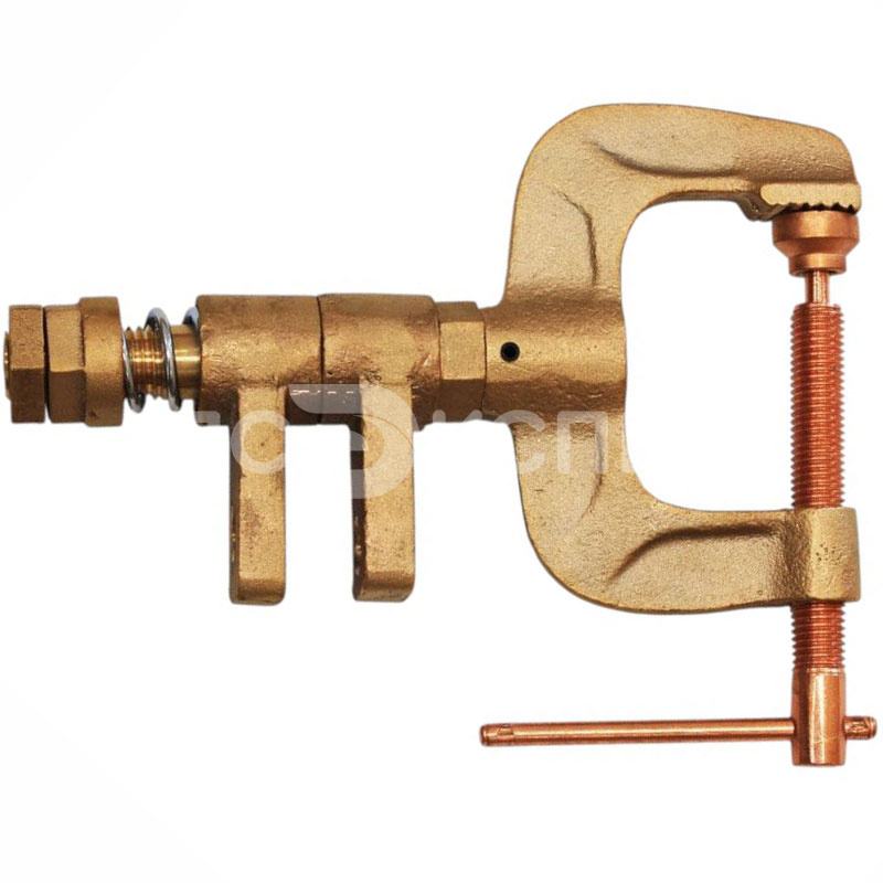 Поворотный зажим массы на 1000А обеспечивает надежное заземление при сварочных работах с высокими токами. Его вращающийся механизм (360°) предотвращает перекручивание кабеля и позволяет легко позиционировать зажим на заготовках любой формы. Изготовлен из медного сплава с антикоррозионным покрытием, оснащен усиленными медными губками с насечкой для максимального контакта и изолированной рукояткой для безопасности.