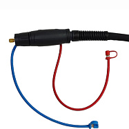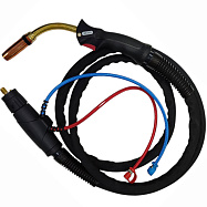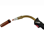 Горелка комплектуется ключевыми компонентами: держателем наконечника, коническим соплом (Ø16 мм), газовым диффузором и направляющим каналом (жёлтый, для проволоки 1,2–1,6 мм). Длина кабеля варьируется (3–5 м), что позволяет выбрать оптимальный вариант для разных задач.