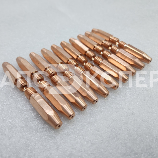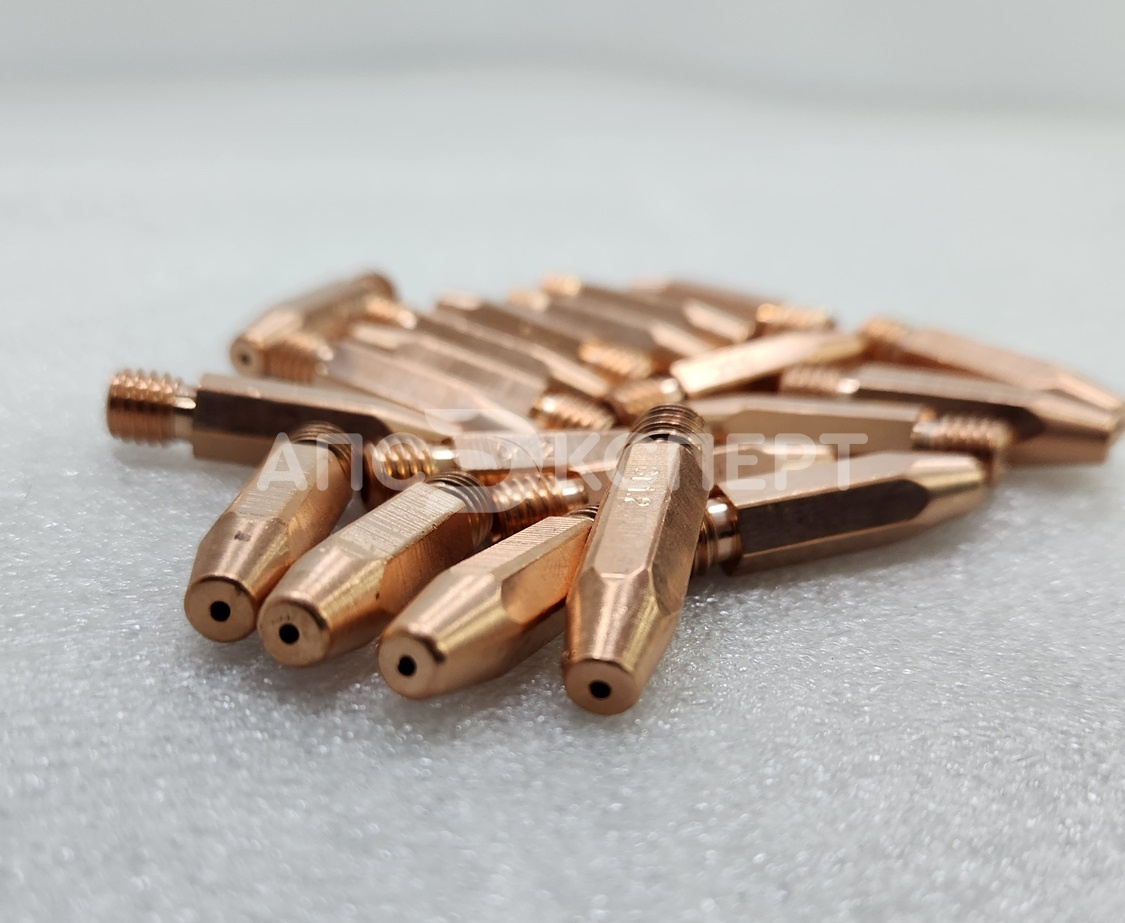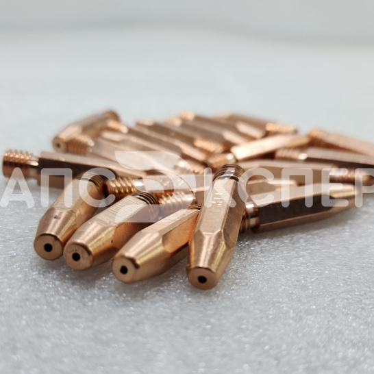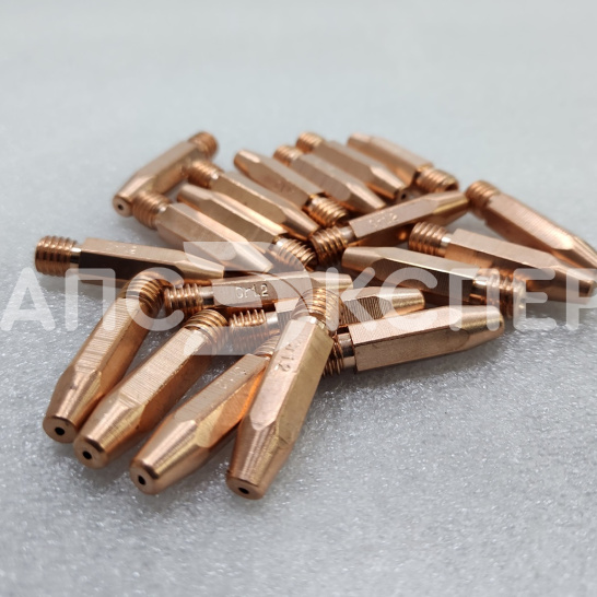 Наконечник токосъёмный M8х1,6 L=35mm (CuCrZr), арт. 9580126ZR — усиленный элемент, используемый в сварочных полуавтоматах для передачи тока к проволоке. Он изготовлен из медного сплава CuCrZr, что значительно увеличивает срок его службы по сравнению со стандартными медными наконечниками. Длина изделия — 35 мм, резьба — М8, подходит для работы со сплошной проволокой из мягкой стали и порошковыми материалами.