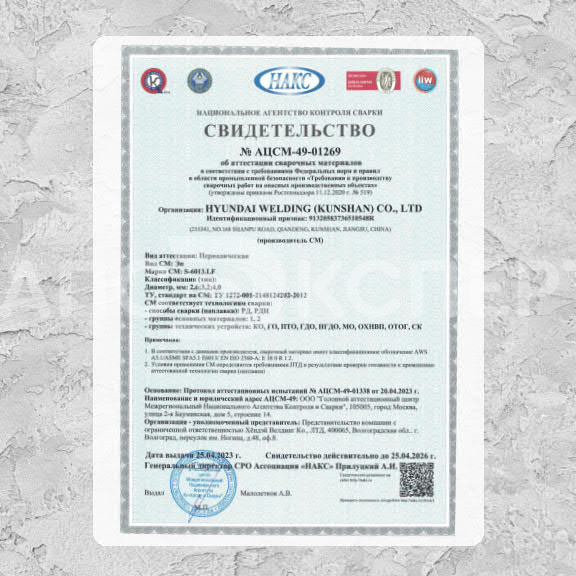 - Сертификация: НАКС