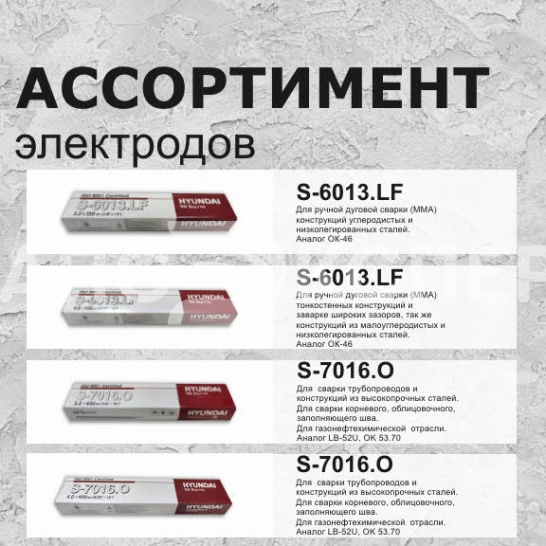 Hyundai Welding ТИП Э46 Аналог: Esab OK-46, ESR 11, Альфа глобал AG E-46, MP3, АНО-21 (цена указана за 1 кг)